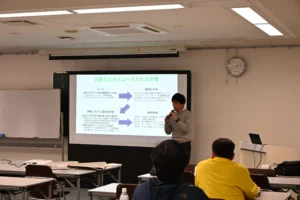 プログラムの集大成として、受講者は令和7年12月20日(土)にマイプロジェクトの発表を行いました。発表会では、各々が「東予地域カーボンニュートラルへの貢献」や「別子山における里山づくりと魅力発信による地域活性化」、「お遍路文化のリノベによる伝統的景観の継承」等をテーマに、約3か月のプログラムで学んだことを活かした10分間のプレゼンテーションを行いました。受講者は、それぞれの発表に対して意見交換やアドバイスを行うなど、活気に満ちた発表会となりました。